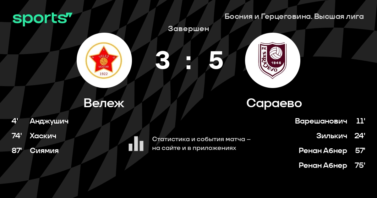 Вележ – Сараево: Вележ забивает в 3 последних матчах против этого соперника