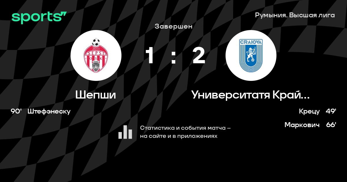 Шепши – КСУ Крайова: Шепши не проигрывает в 8 из 10 последних матчей против этого соперника