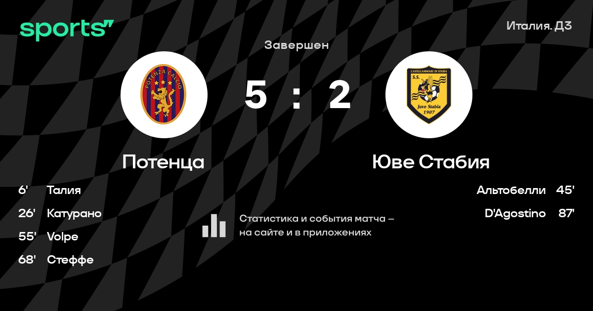 Потенца – Юве Стабия: Юве Стабия не пропускает в 1 из 7 последних матчей против этого соперника