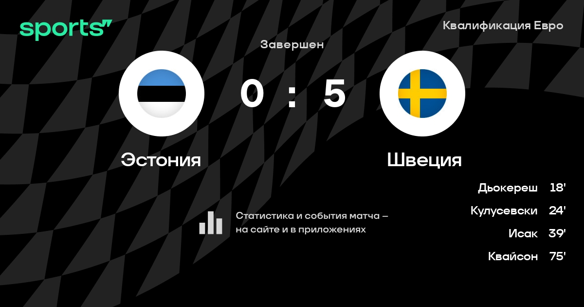 Эстония – Швеция: Швеция не проигрывает в 7 последних матчах против этого соперника