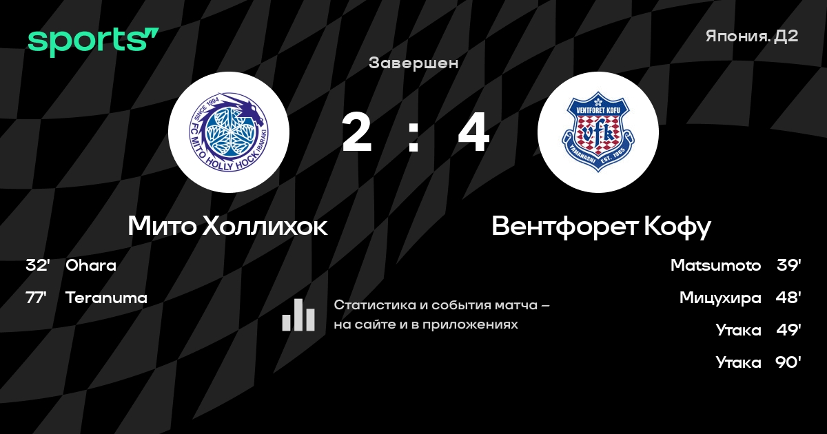 Мито Холлихок – Вентфорет Кофу: Мито Холлихок забивает в 3 последних матчах против этого соперника