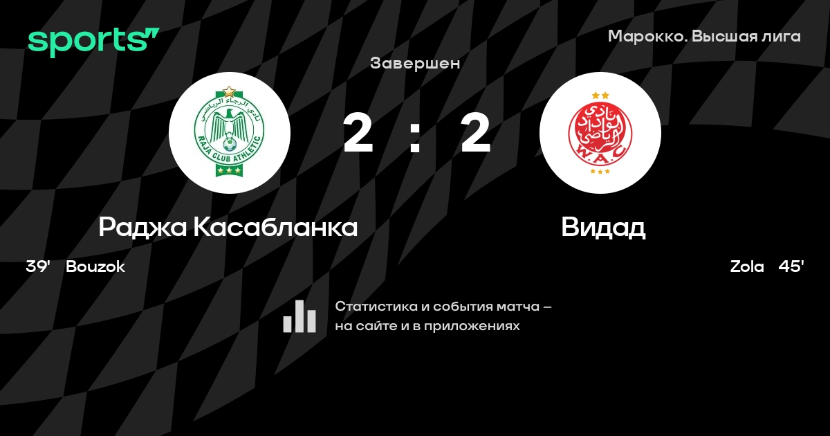 Раджа Касабланка – Видад: Видад не проигрывает в 6 из 8 последних матчей против этого соперника
