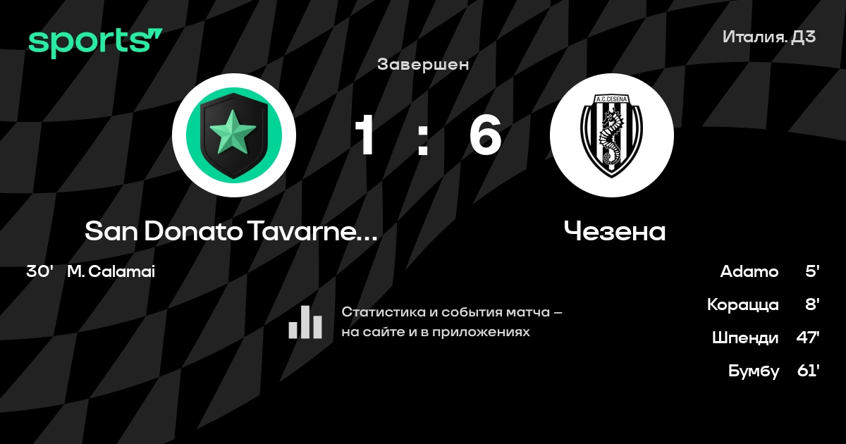 Тоццо - Чофи, Simone Pieraccini, Silvestri - Бьянки, Adamo, Де Розе, Мустаккьо, Храйеш - Корацца, ШпендиЗапасные: Lewis, Pollini, Albertini, Кальдерони, Lepri, David, Брамбилла, Бумбу, Кьярелло, Shpendi, Udoh, Дзекка, Ферранте