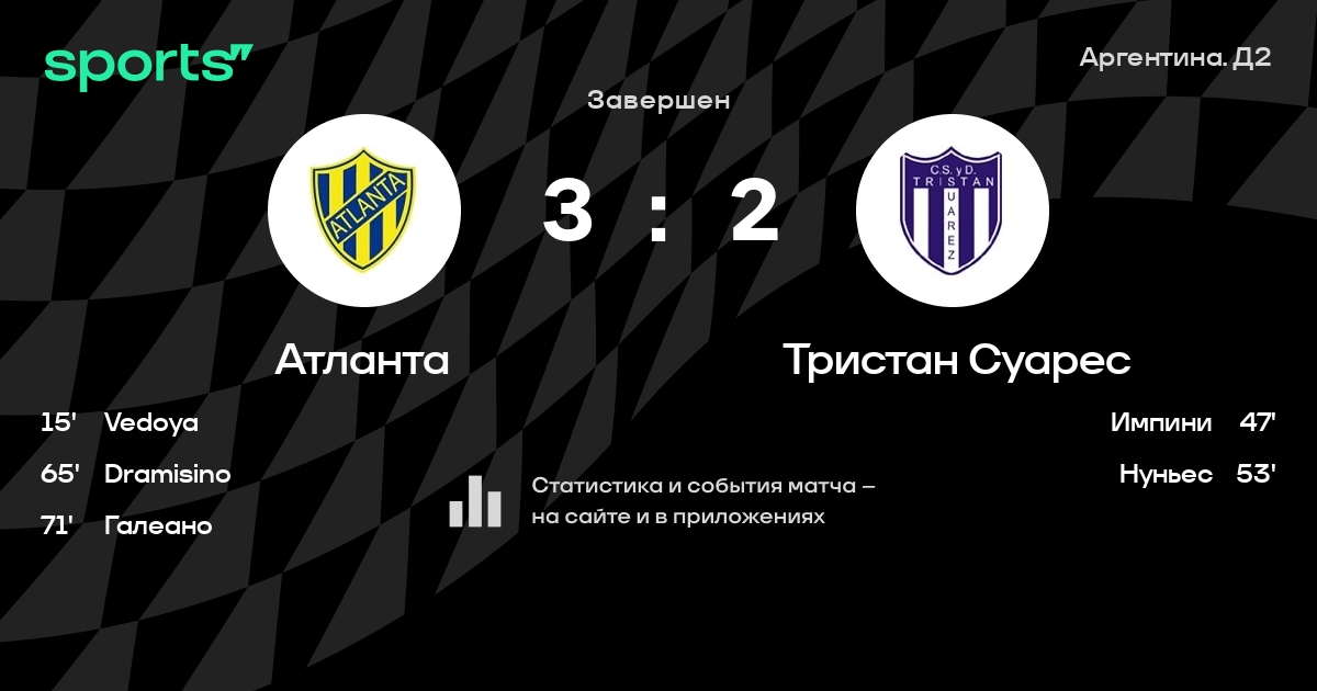 Атланта – Тристан Суарес: Атланта не проигрывает в 7 из 9 последних матчей против этого соперника