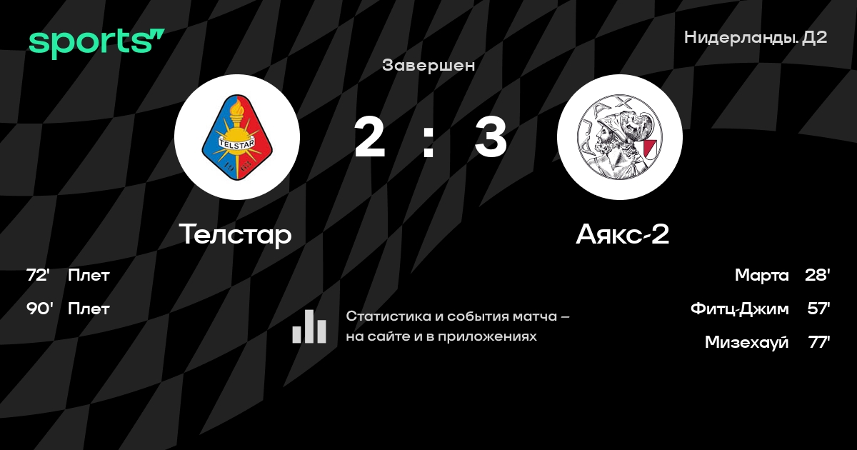 Телстар – Аякс-2: Аякс-2 не проигрывает в 5 из 7 последних матчей против этого соперника в гостях