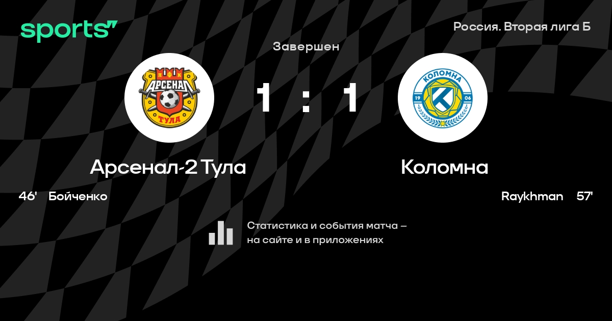 Арсенал-2 Тула – Коломна: Коломна забивает в 3 последних матчах против этого соперника