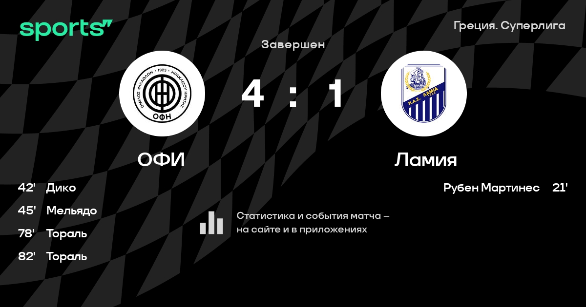 ОФИ – Ламия: ОФИ не проигрывает в 8 из 10 последних матчей против этого соперника