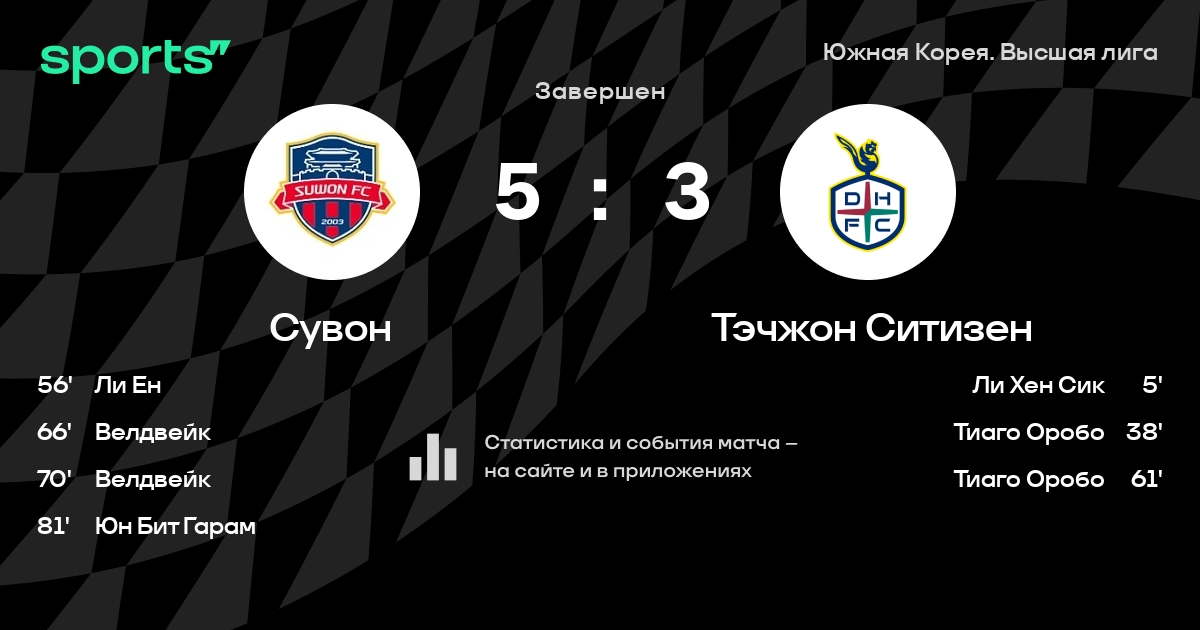 Сувон Сити – Тэчжон Ситизен: Сувон Сити забивает в 4 последних матчах против этого соперника
