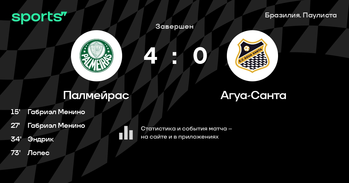 Палмейрас – Агуа-Санта: Палмейрас забивает в 5 последних матчах против этого соперника