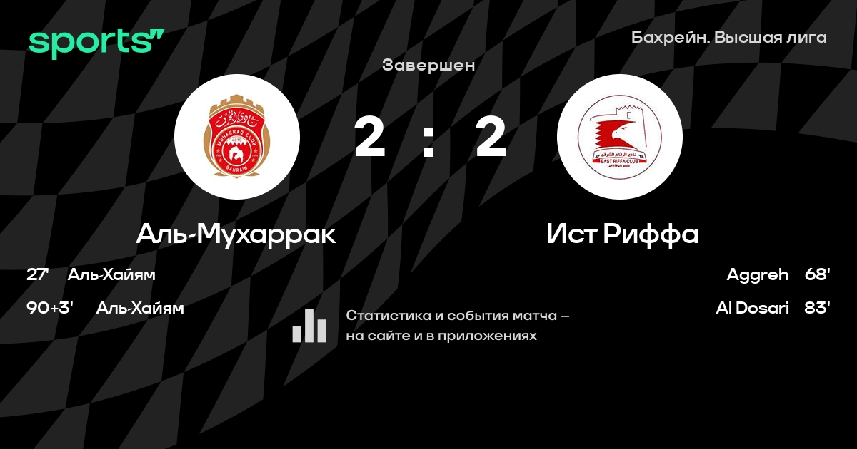 Аль-Мухаррак – Ист Риффа: коэффициенты