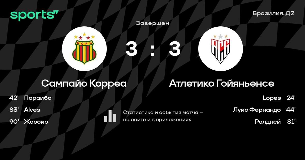 Сампайо Корреа – Атлетико Гойяньенсе: Атлетико Гойяньенсе забивает в 4 последних матчах против этого соперника