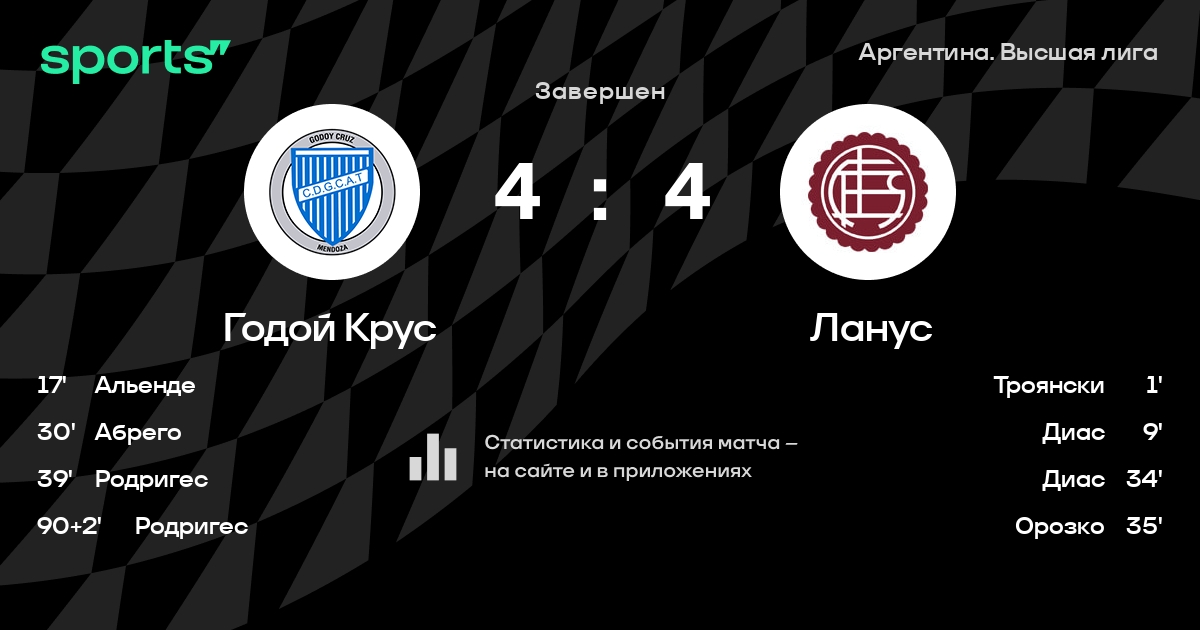 Годой Крус – Ланус: Годой Крус забивает в 4 последних матчах против этого соперника
