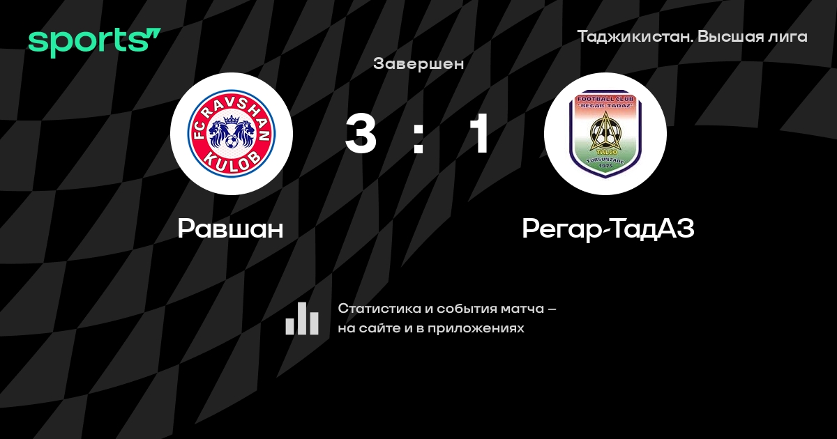 Равшан – Регар-ТадАЗ: Равшан не проигрывает в 7 из 9 последних матчей против этого соперника