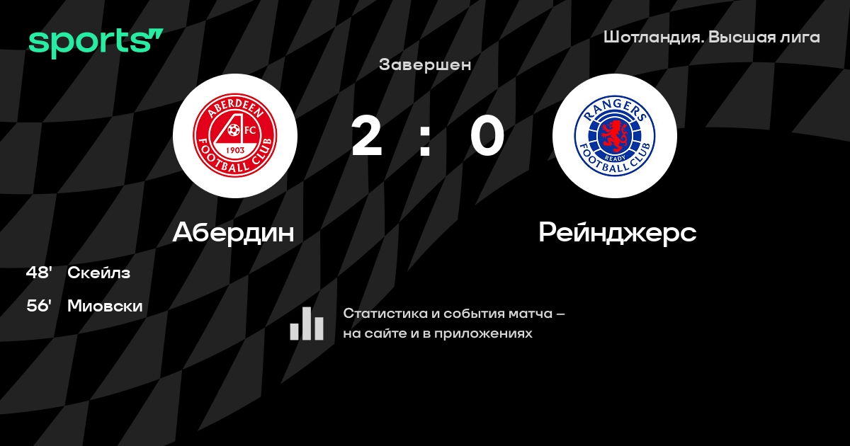 Абердин – Рейнджерс: Рейнджерс побеждает в 4 последних очных матчах
