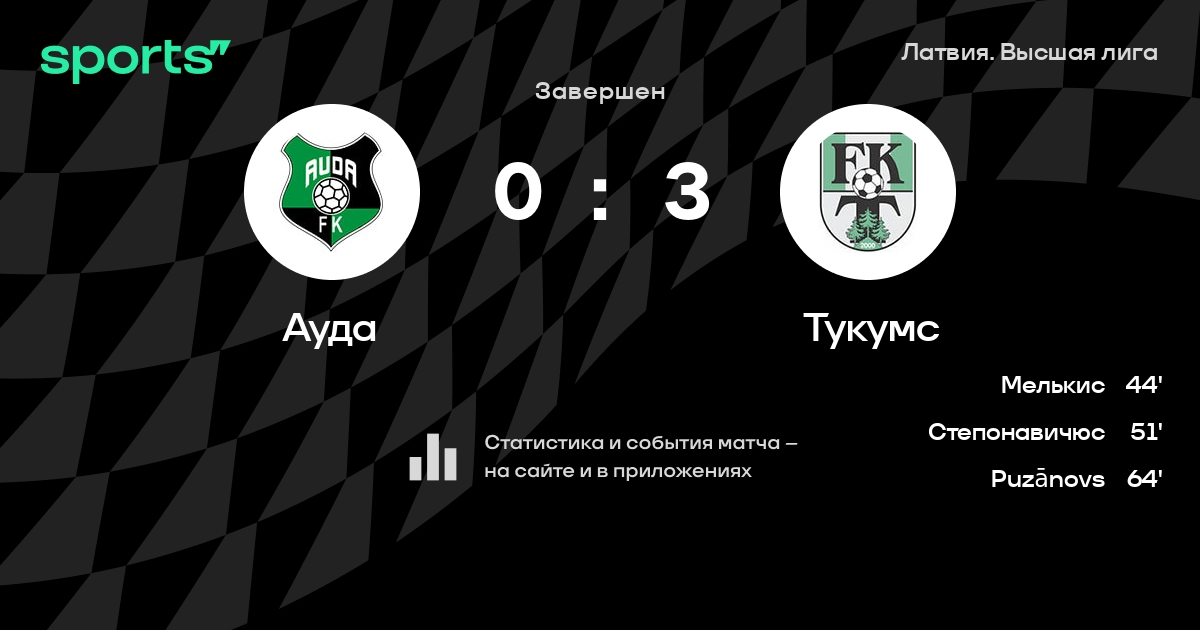 Ауда – Тукумс: Ауда забивает в 5 из 7 последних матчей против этого соперника