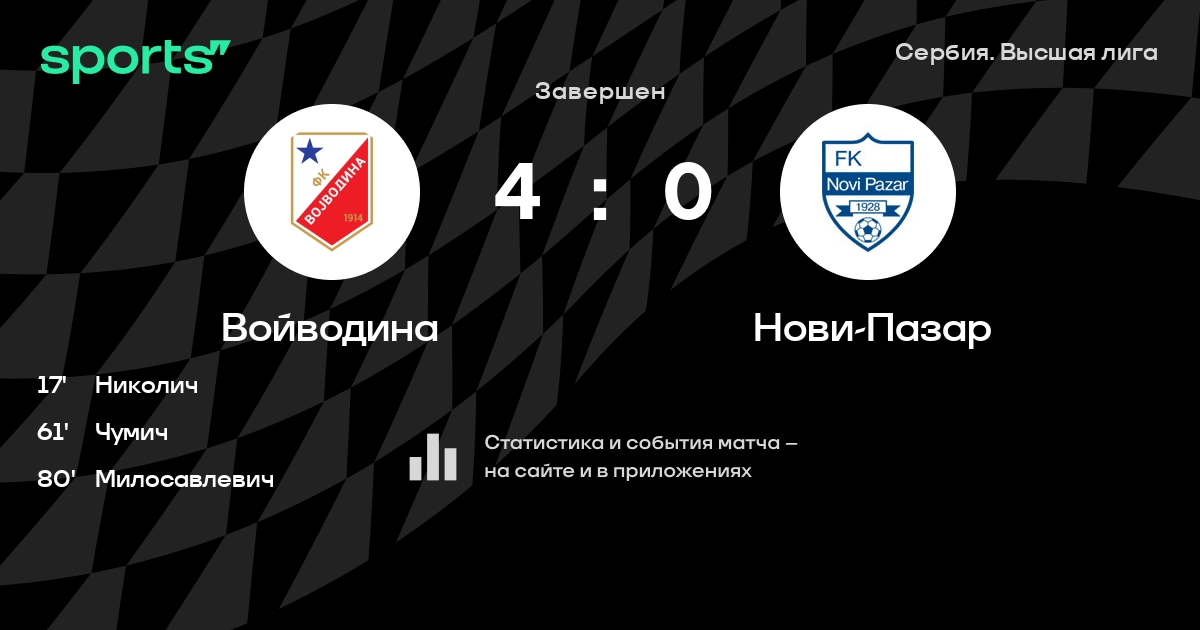 Войводина – Нови-Пазар: Войводина не проигрывает в 5 последних матчах против этого соперника