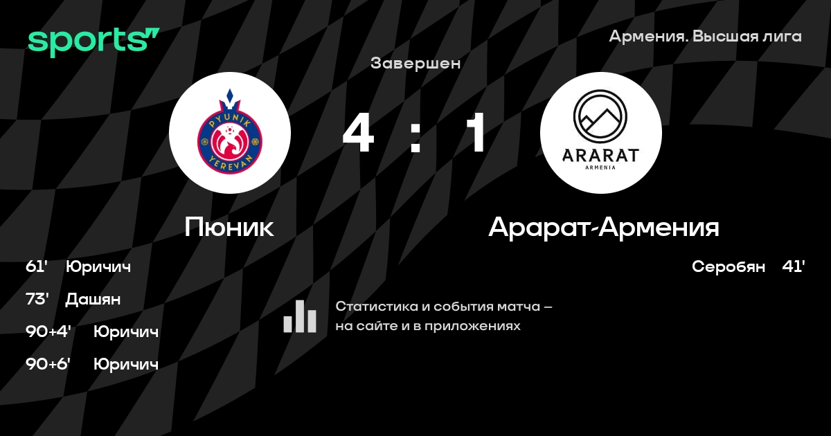Пюник – Арарат-Армения: Пюник не проигрывает в 6 последних матчах против этого соперника