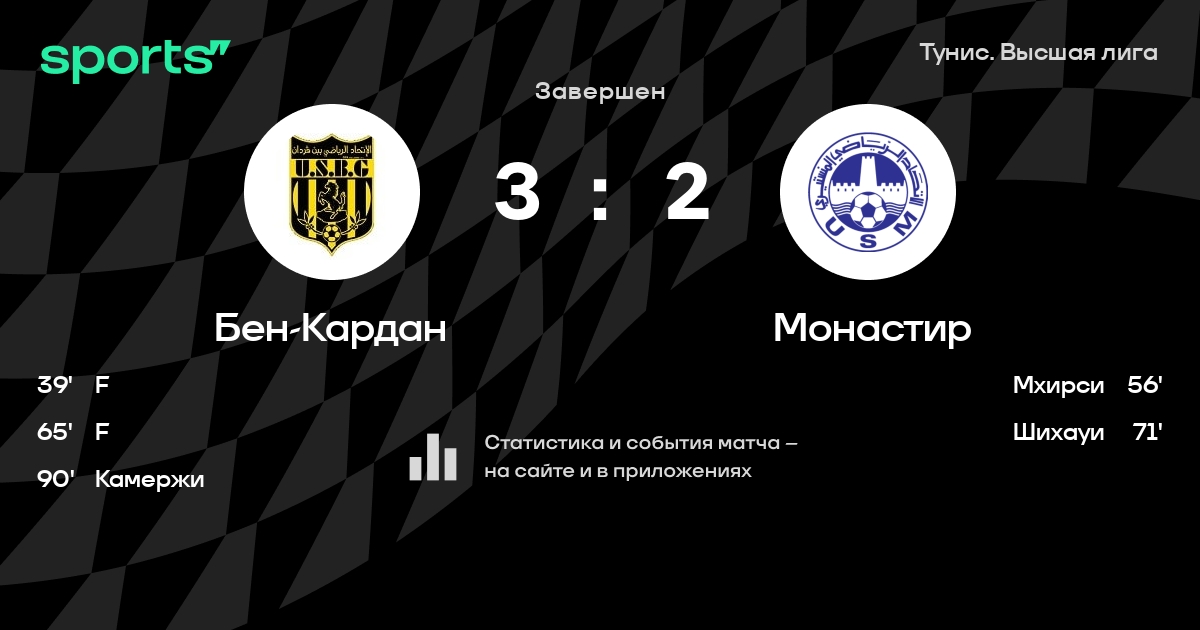 Бен-Кардан – Монастир: Бен-Кардан не пропускает в 3 последних матчах против этого соперника