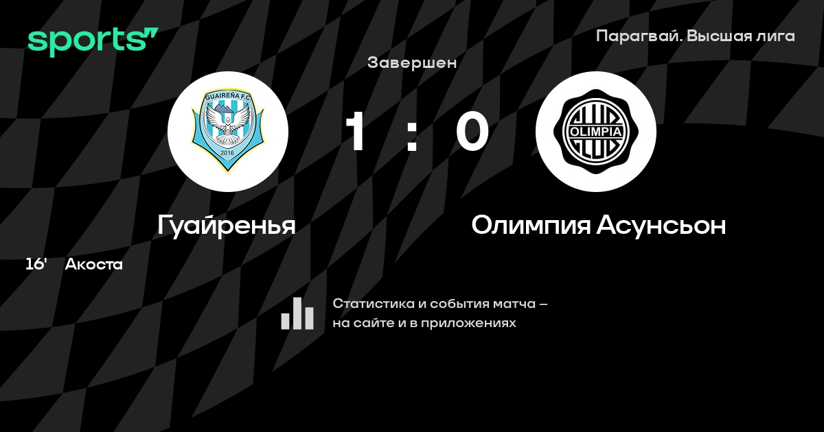 Гуайренья – Олимпия Асунсьон: Олимпия Асунсьон забивает в 6 последних матчах против этого соперника