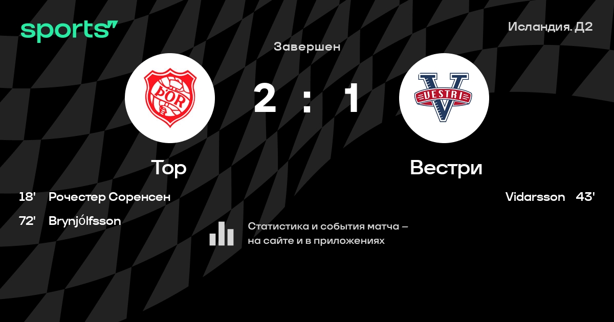 Тор – Вестри: Вестри не проигрывает в 6 из 7 последних матчей против этого соперника