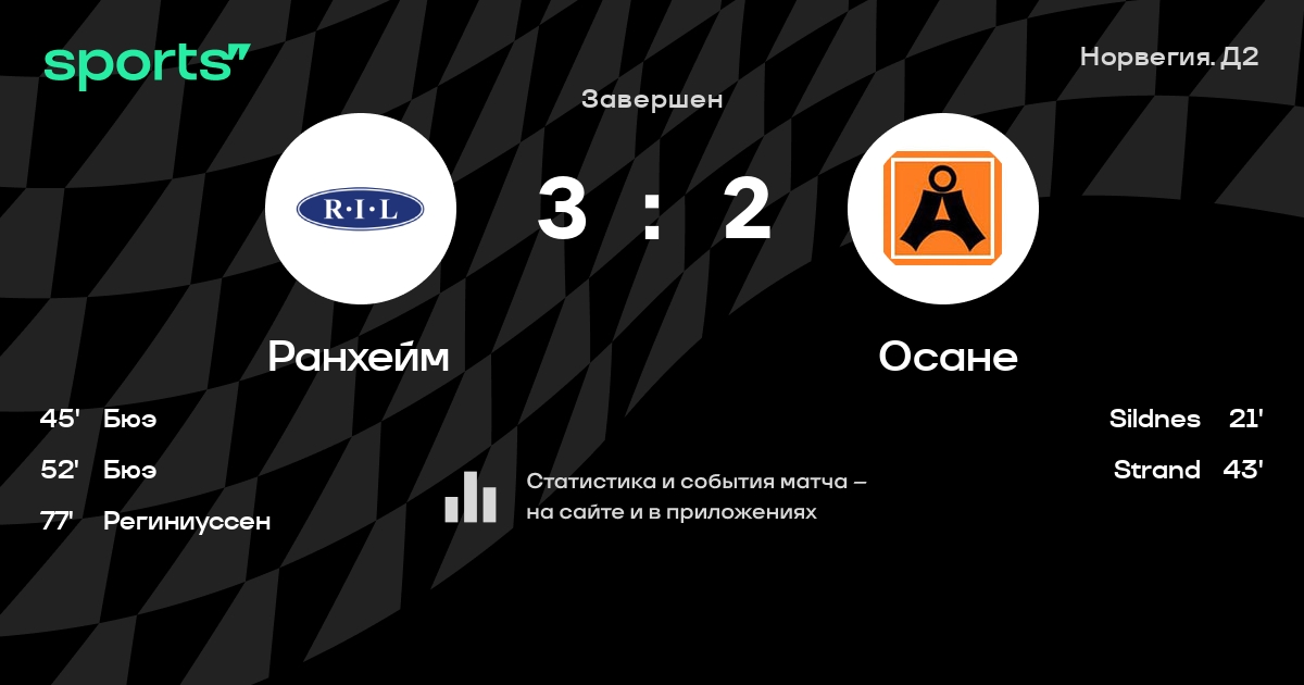 Ранхейм – Осане: Ранхейм забивает в 13 последних матчах против этого соперника