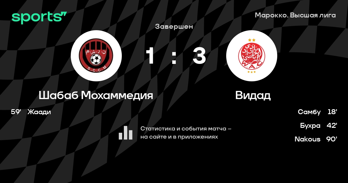 Шабаб Мохаммедия – Видад: Видад забивает в 3 последних матчах против этого соперника