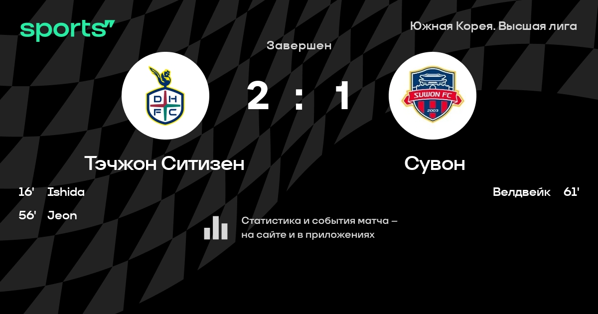 Тэчжон Ситизен – Сувон Сити: Тэчжон Ситизен забивает в 5 из 7 последних матчей против этого соперника