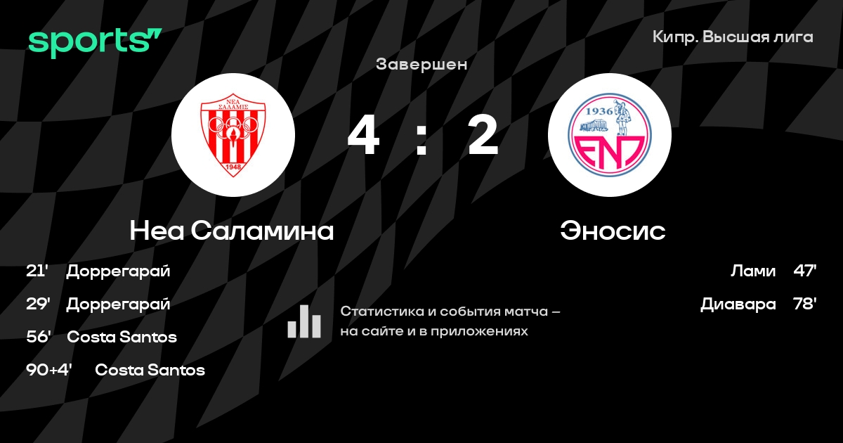 Неа Саламина – Эносис: Неа Саламина не проигрывает в 6 из 8 последних матчей против этого соперника дома в турнире «Лига 1»