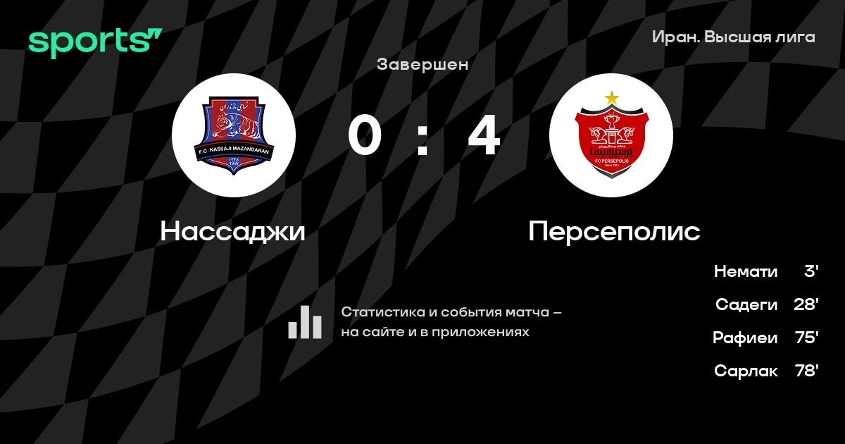 Нассаджи – Персеполис: Нассаджи забивает в 3 последних матчах против этого соперника