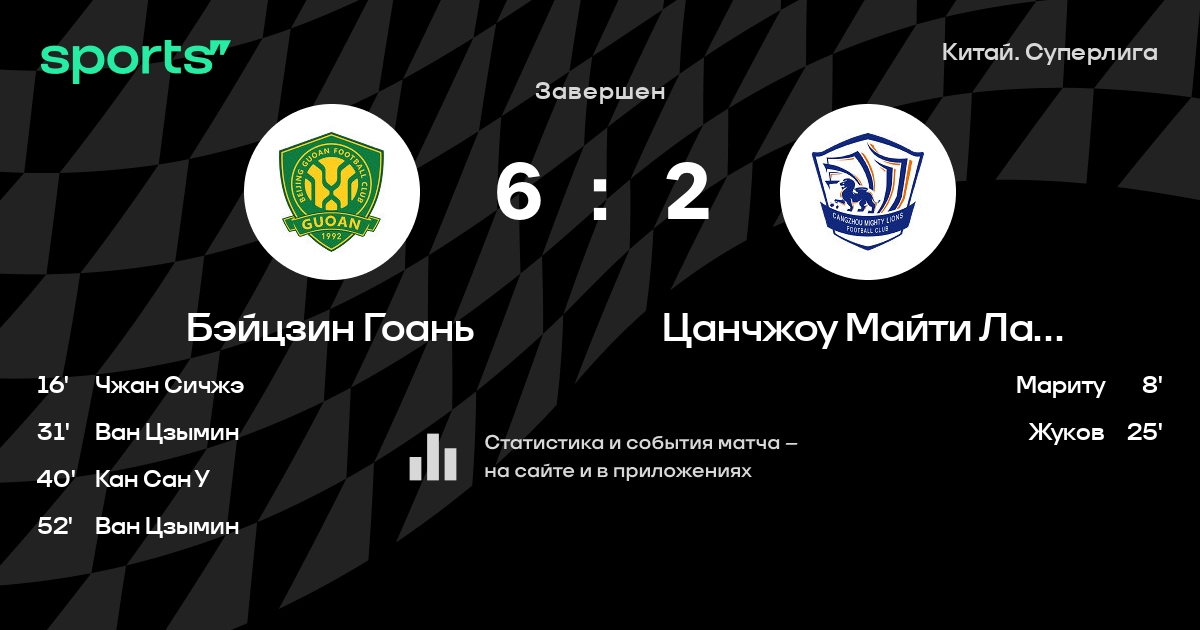 Бэйцзин Гоань – Цанчжоу Майти Лайонс: Цанчжоу Майти Лайонс не проигрывает в 6 из 8 последних матчей против этого соперника