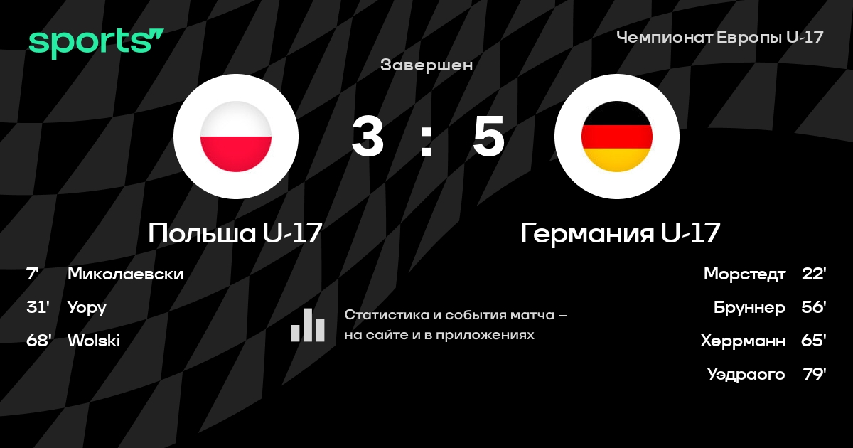 В последних 5 играх Польша U-17 забивает в среднем 2.80 гола за игру