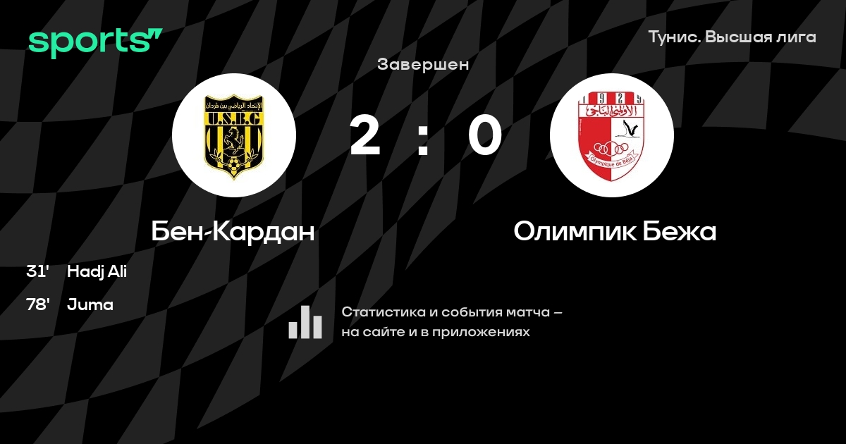 Бен-Кардан – Олимпик Бежа: Бен-Кардан не проигрывает в 5 последних матчах против этого соперника