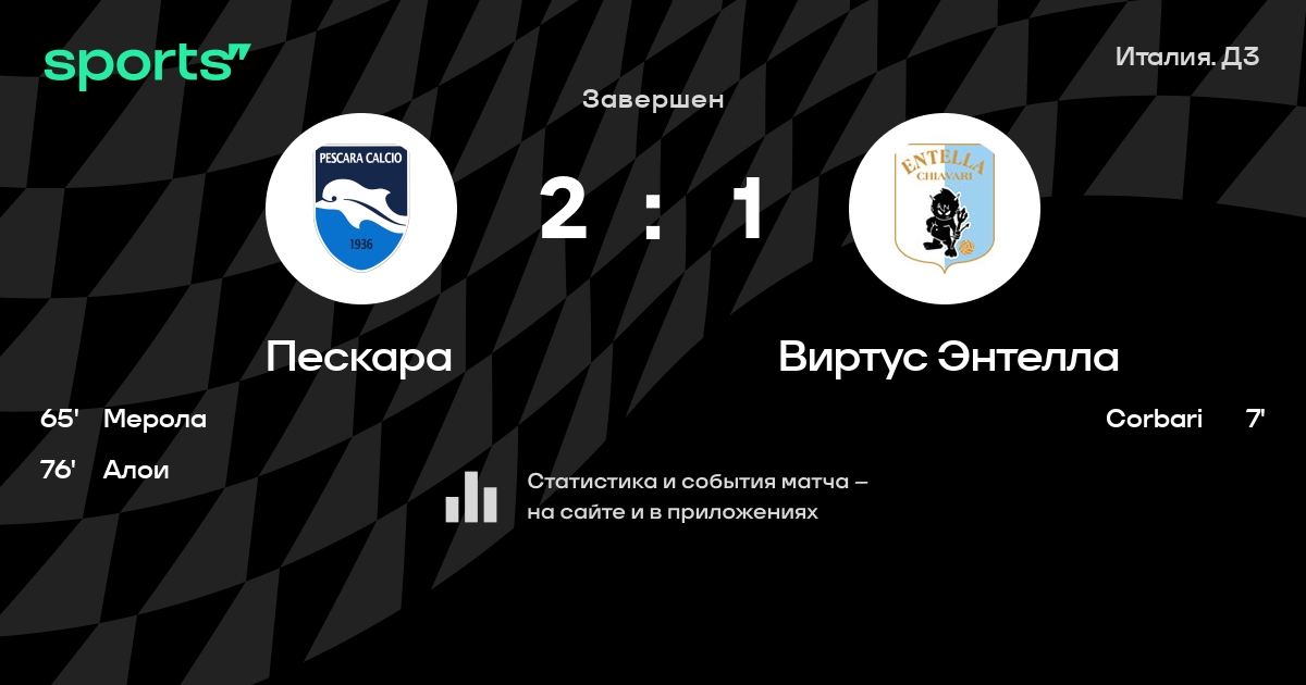 Пескара – Виртус Энтелла: Виртус Энтелла не проигрывает в 9 последних матчах против этого соперника