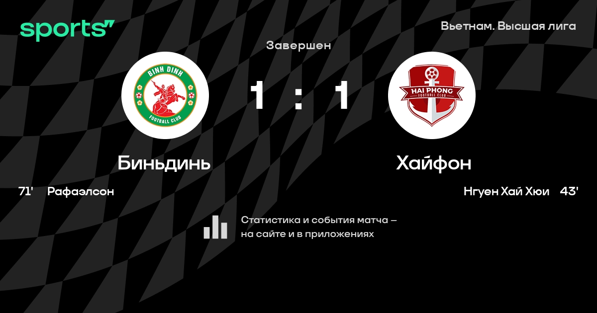 Результат прошлой игры в турнире «Высшая лига»: Биньдинь – Намдинь 1:1. После 9 туров Биньдинь набирает 14 очков и занимает 4 место в турнире. В 4 последних матчах в турнире «Высшая лига» Биньдинь обязательно забивает. Биньдинь пропускает в 6 последних матчах в турнире «Высшая лига». В последних 5 играх Биньдинь забивает 6 голов. В последних 5 играх Биньдинь пропускает 6 голов.