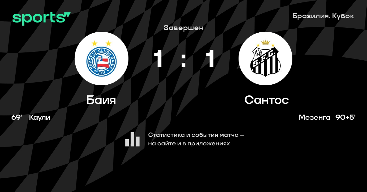 Баия – Сантос: Сантос не пропускает в 3 последних матчах против этого соперника