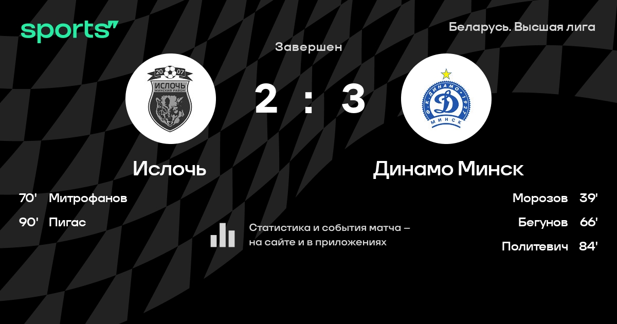 Ислочь – Динамо Минск: Динамо Минск забивает в 13 последних матчах против этого соперника