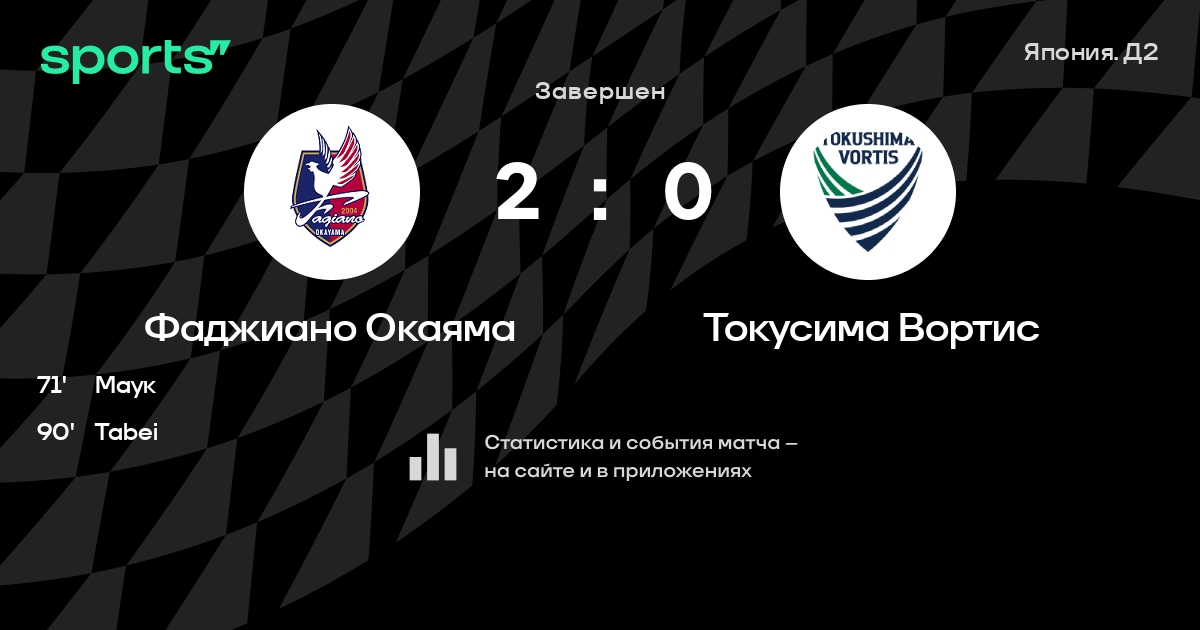 Фаджиано Окаяма – Токусима Вортис: Токусима Вортис забивает в 3 последних матчах против этого соперника