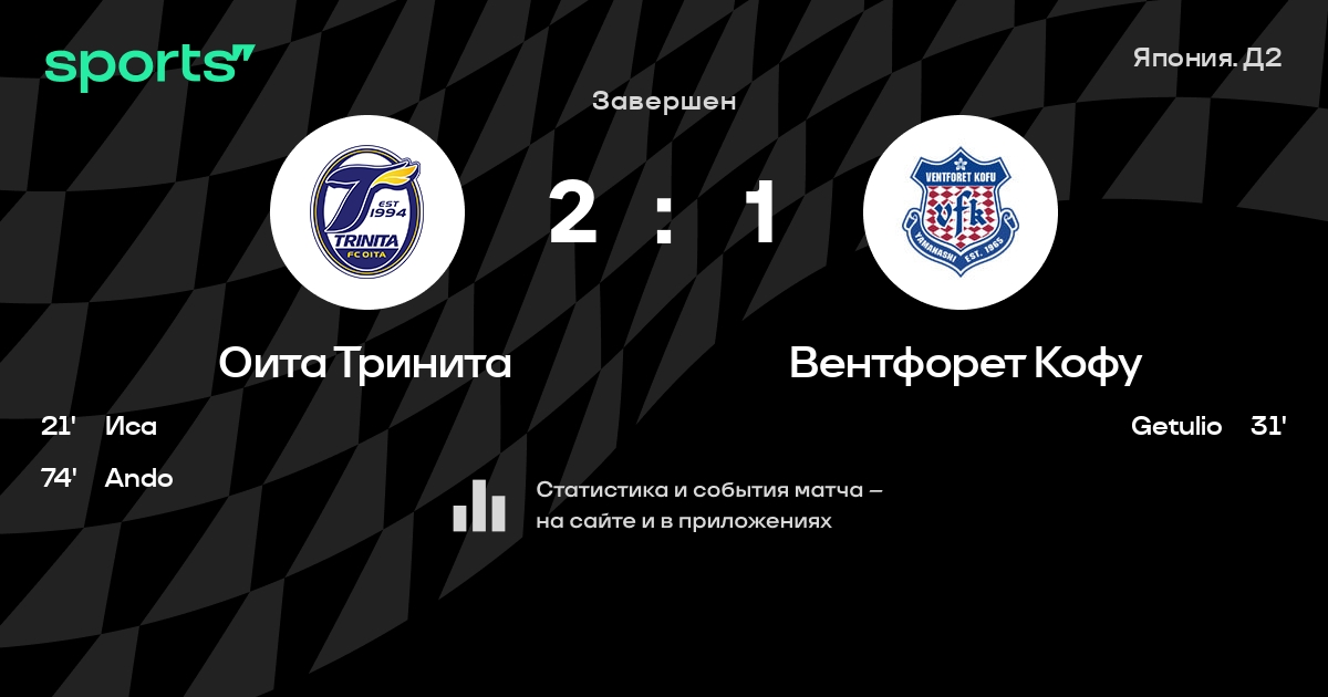 Оита Тринита – Вентфорет Кофу: Вентфорет Кофу не проигрывает в 7 из 8 последних матчей против этого соперника в турнире «Лига 2»