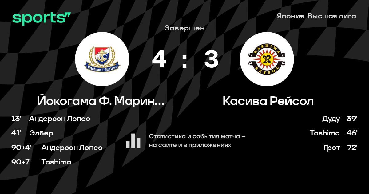 Йокогама Ф. Маринос – Касива Рейсол: Йокогама Ф. Маринос забивает в 4 последних матчах против этого соперника