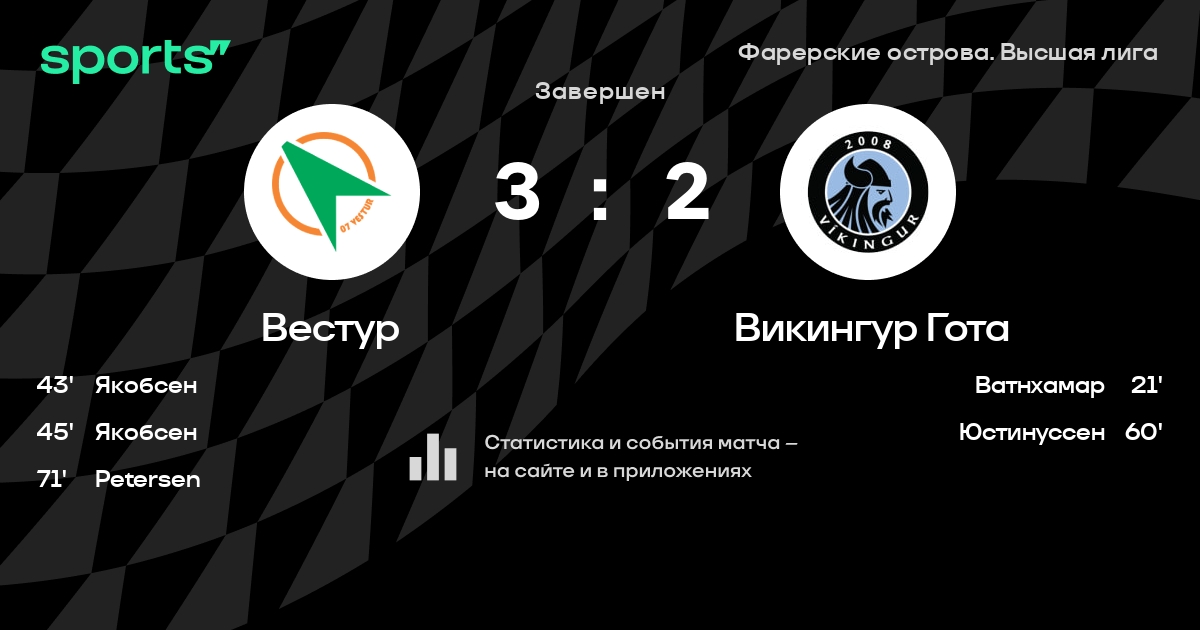 Вестур – Викингур Гота: Викингур Гота не проигрывает в 7 последних матчах против этого соперника
