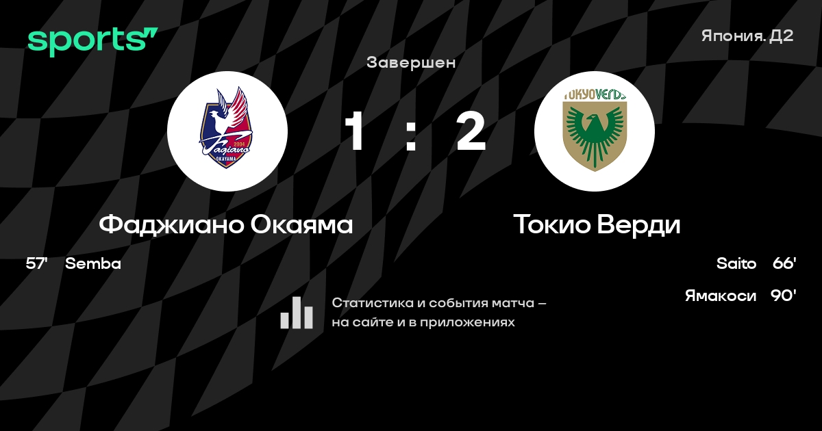 Фаджиано Окаяма – Токио Верди: Токио Верди не проигрывает в 7 из 9 последних матчей против этого соперника в гостях