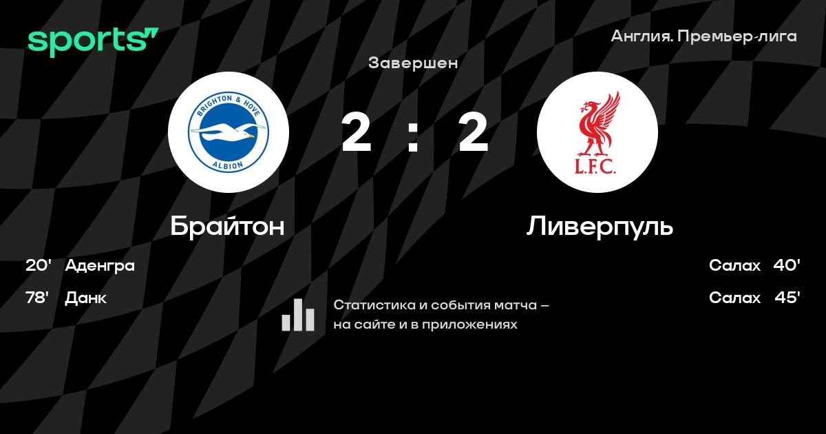 Брайтон – Ливерпуль: Ливерпуль не проигрывает в 9 из 10 последних матчей против этого соперника в гостях в турнире «Премьер-лига»