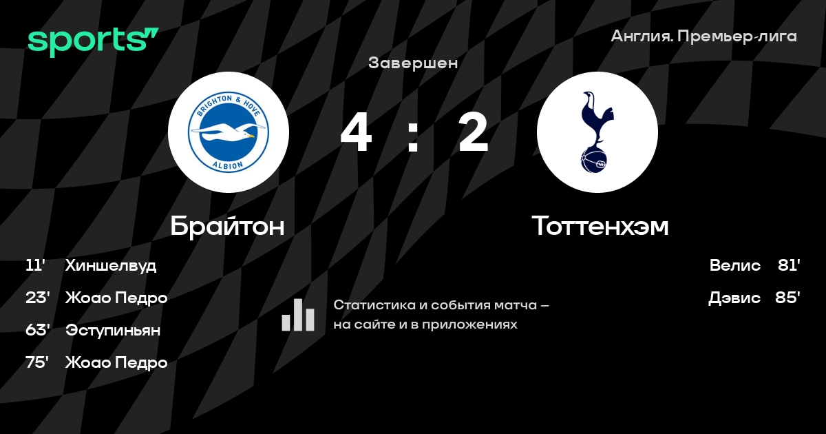 Стил - Игор Жулио, Данк, ван Хекке, Хиншелвуд - Милнер, Гилмор, Буонанотте, Гросс - Уэлбек, Жоао ПедроЗапасные: Вербрюгген, Эступиньян, Бейкер-Боайтей, Дауд, Модер, Балеба, Бэррингтон, Фергюсон