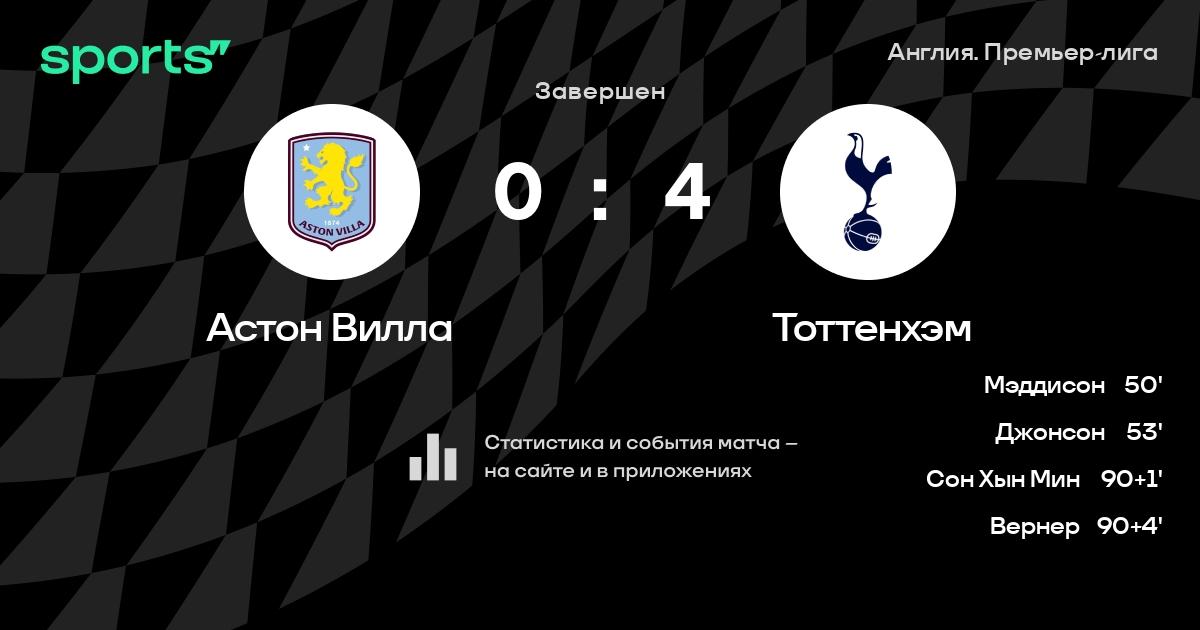Астон Вилла – Тоттенхэм: Тоттенхэм не проигрывает в 12 из 14 последних матчей против этого соперника в гостях