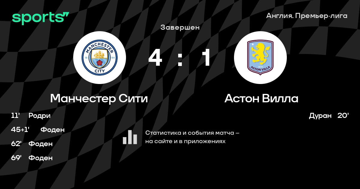 Трансляция Манчестер Сити - Астон Вилла