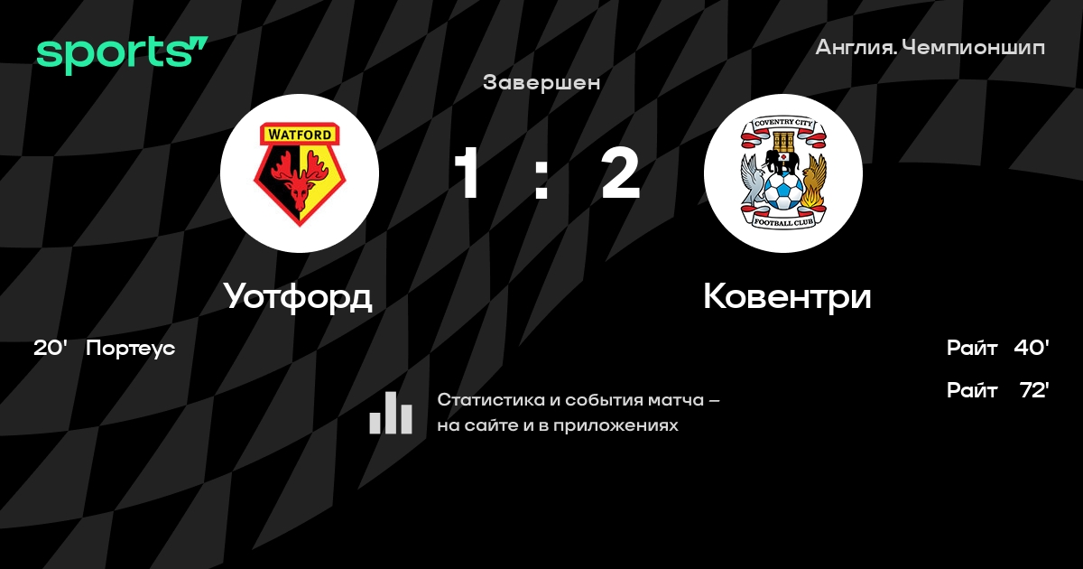 Уотфорд – Ковентри: Ковентри не проигрывает в 8 из 10 последних матчей против этого соперника в турнире «Чемпионшип»