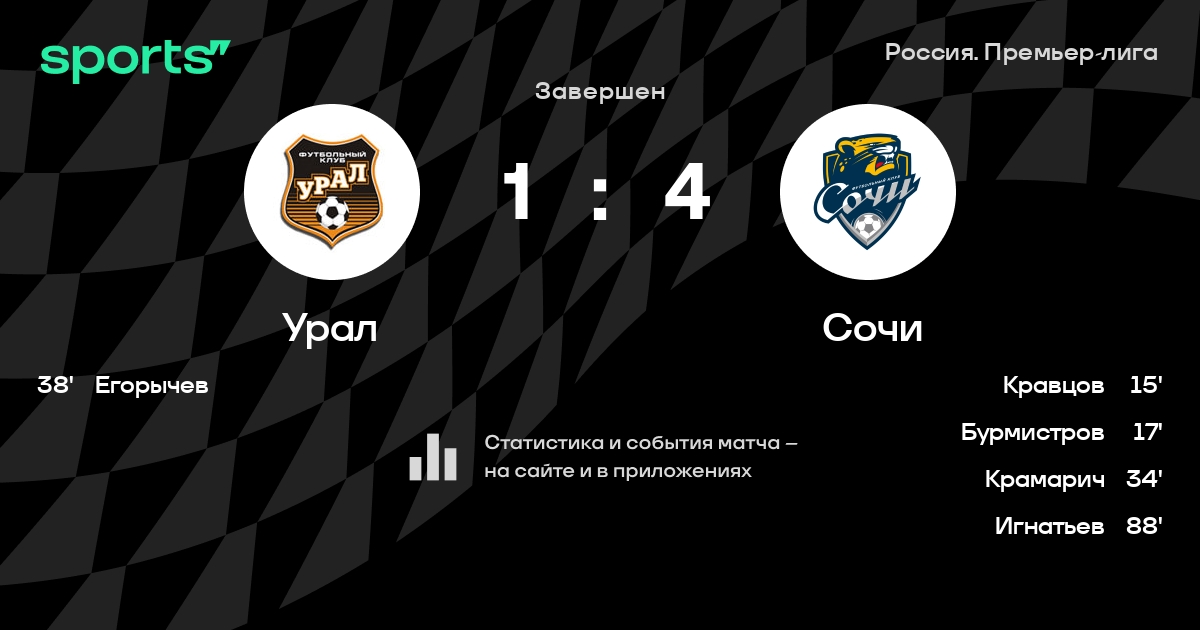 Урал – Сочи: Урал забивает в 5 последних матчах против этого соперника