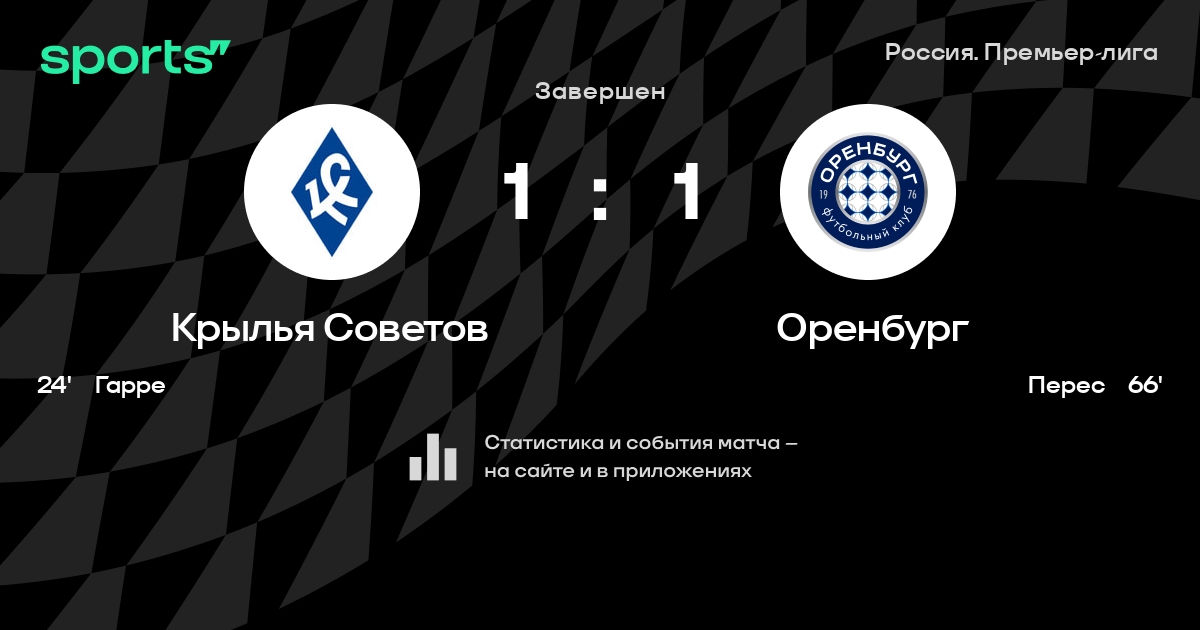 «Крылья Советов» и «Оренбург» сыграли вничью – 1:1. Перес ответил на гол Гарре