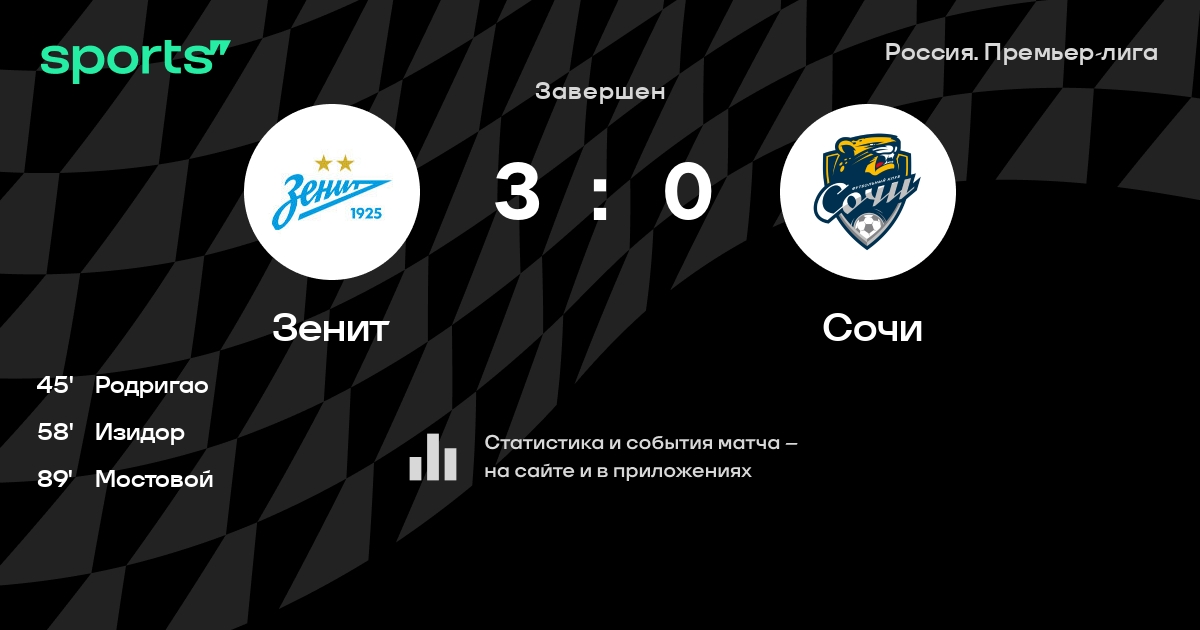 Зенит – Сочи: Зенит забивает в 4 последних матчах против этого соперника
