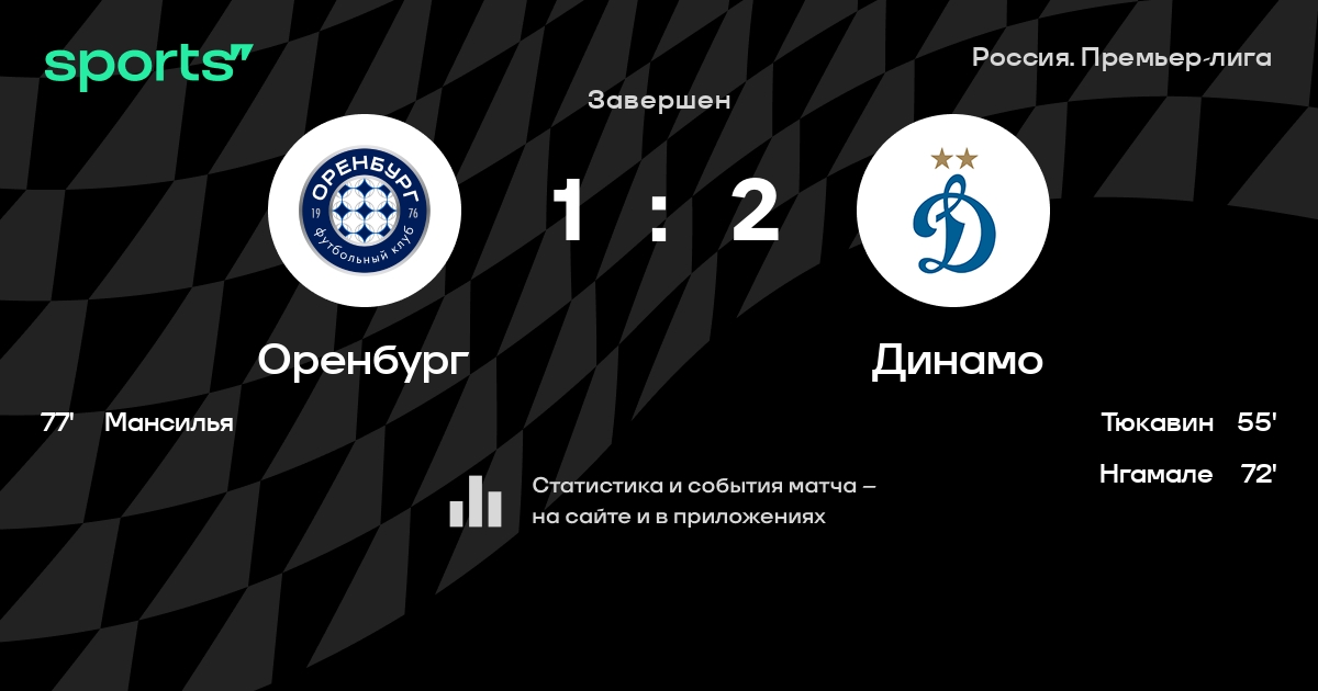 Оренбург – Динамо: Динамо побеждает в 3 последних очных матчах